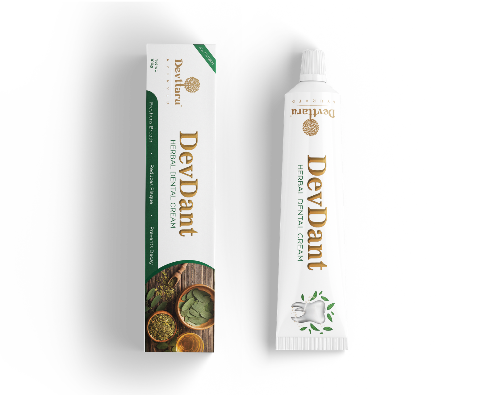 Devttaru DevDant Toothpaste is a premium herbal formulation designed to provide complete oral care by naturally strengthening teeth, protecting gums, and maintaining fresh breath. Enriched with powerful ingredients like neem, clove, babool, mint, and mulethi, it helps fight cavities, reduce plaque buildup, and prevent gum infections.